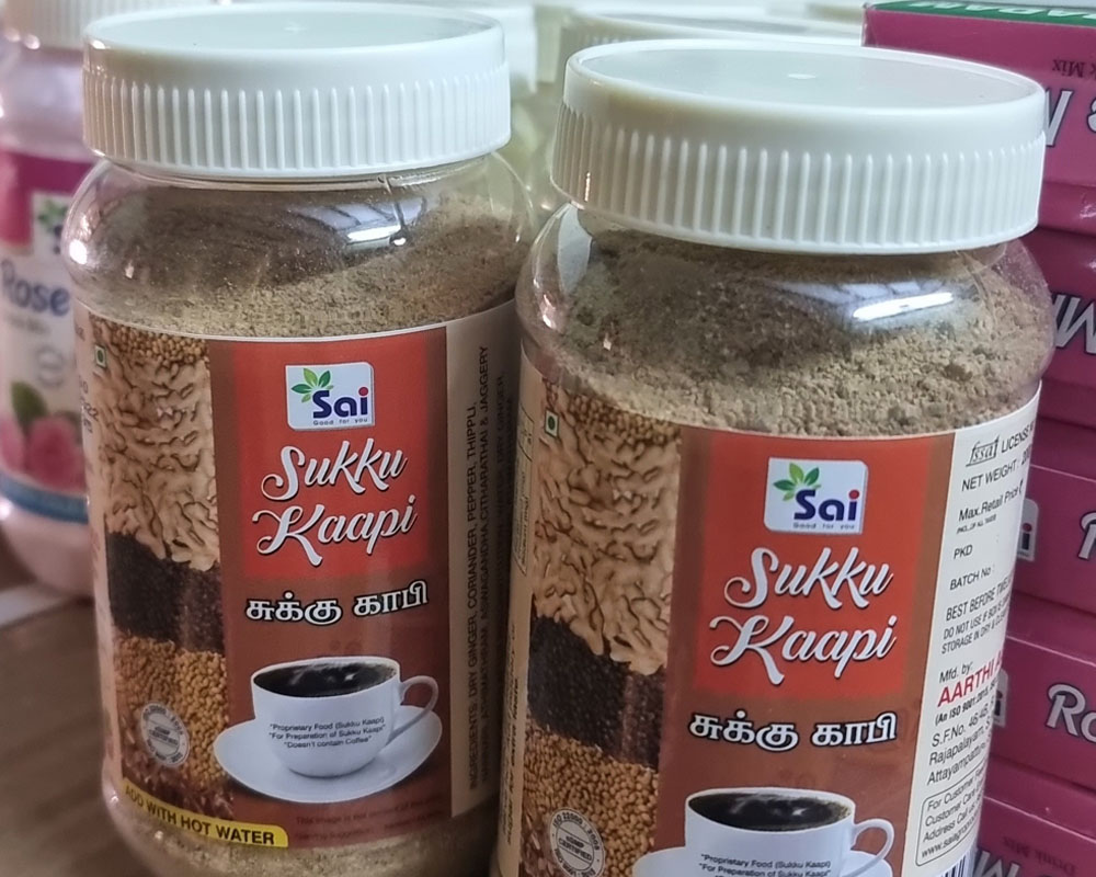 Indulge in the rich warmth of Sukku Coffee, a harmonious blend of dried ginger, coriander, and other aromatic spices. This traditional South Indian beverage offers a soothing experience, perfect for relaxation and digestion. With its unique flavor profile and potential health benefits, Sukku Coffee is a delightful choice for a flavorful and invigorating drink. Simply mix with hot water and savor the comforting essence of this age-old recipe.